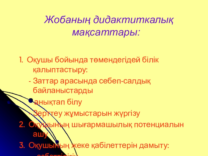 Слайд 7Өзбетінше зерттеудің мақсаты: