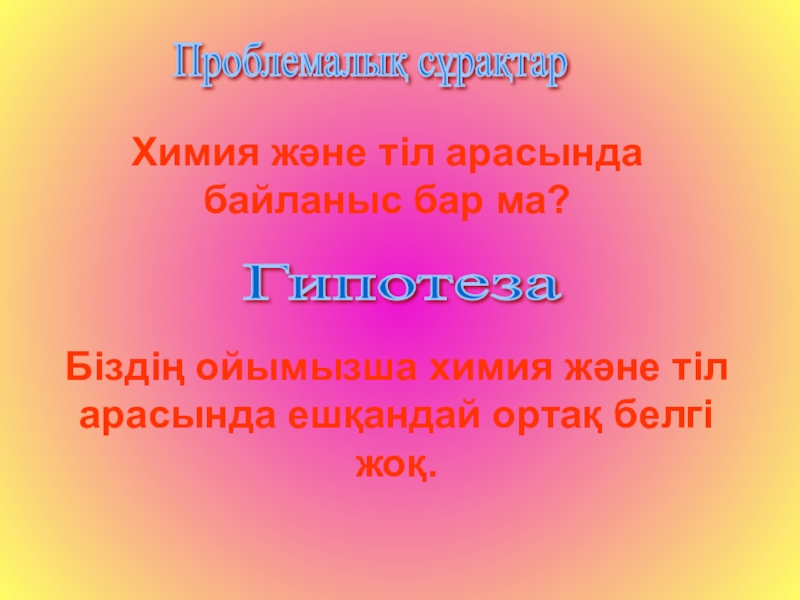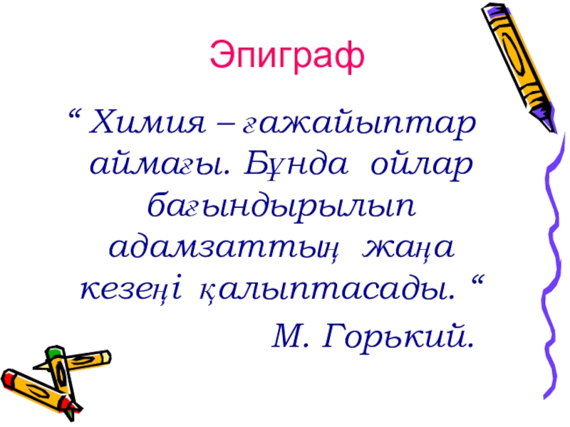 “ Химия – ғажайыптар аймағы. Бұнда ойлар бағындырылып адамзаттың жаңа кезеңі