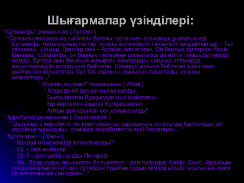Төмедегі әдеби шығармаларынан берілген үзінділерді оқып, сұрақтарға жауаптарыңыз сұралады: