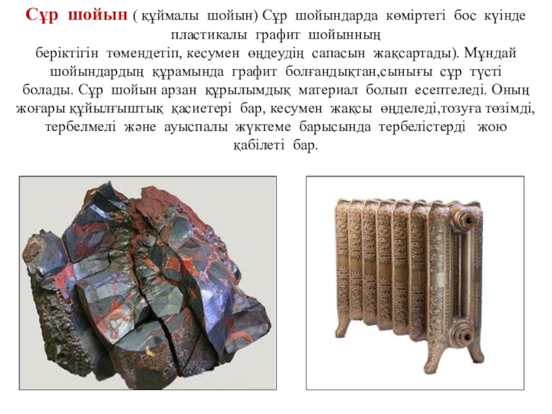 Слайд 19Сұр шойын ( құймалы шойын) Сұр шойындарда көміртегі бос күінде пластикалы графит