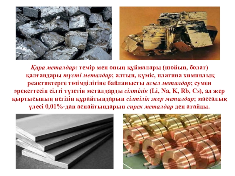 Слайд 2Қара металдар: темір мен оның құймалары (шойын, болат)