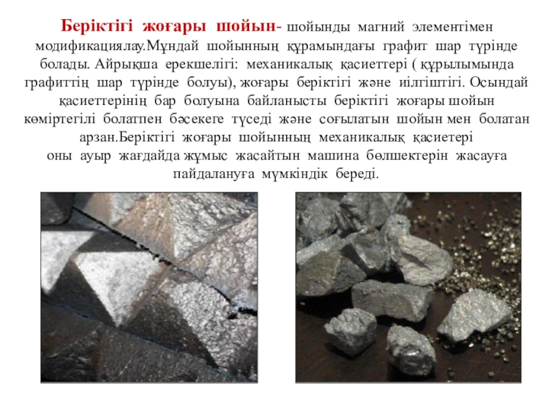 Слайд 21Беріктігі жоғары шойын- шойынды магний элементімен модификациялау.Мұндай шойынның құрамындағы графит шар