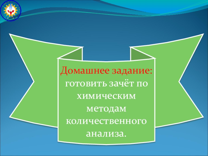 Домашнее задание:готовить зачёт по химическим методам количественного анализа.