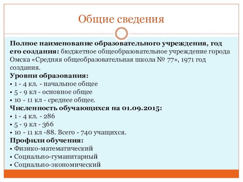 города Омска «Средняя общеобразовательная школа № 77», 1971 год создания.