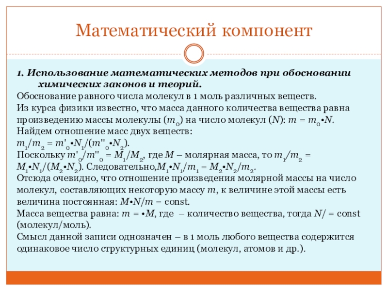 1. Использование математических методов при обосновании химических законов и теорий.