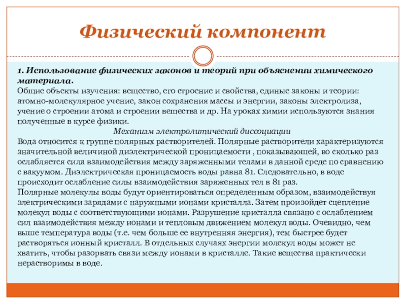 1. Использование физических законов и теорий при объяснении химического материала.