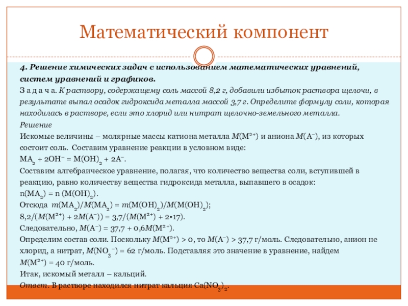 4. Решение химических задач с использованием математических уравнений, систем уравнений