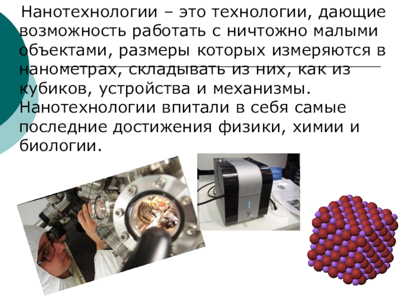 Нанотехнологии – это технологии, дающие возможность работать с ничтожно