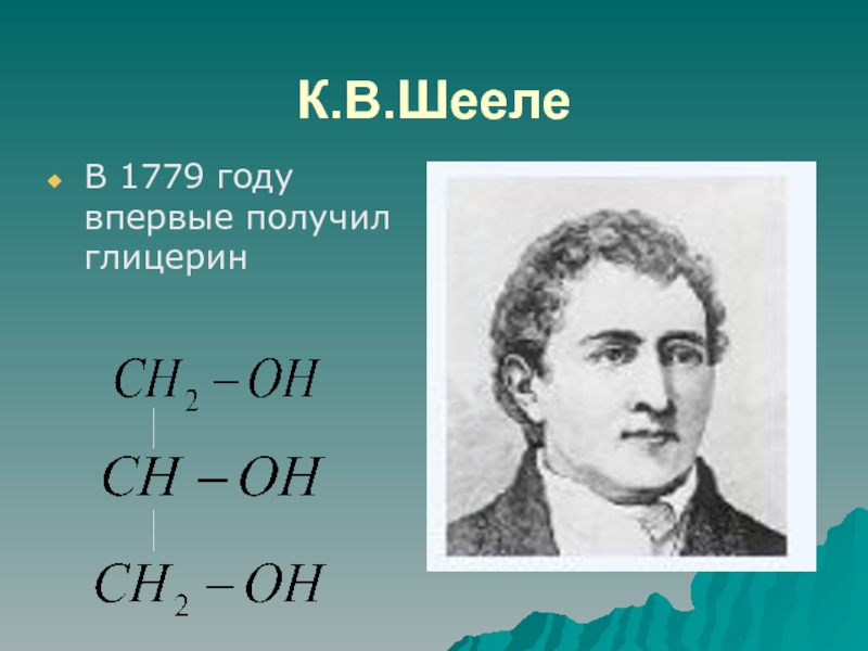 К.В.ШеелеВ 1779 году впервые получил глицерин
