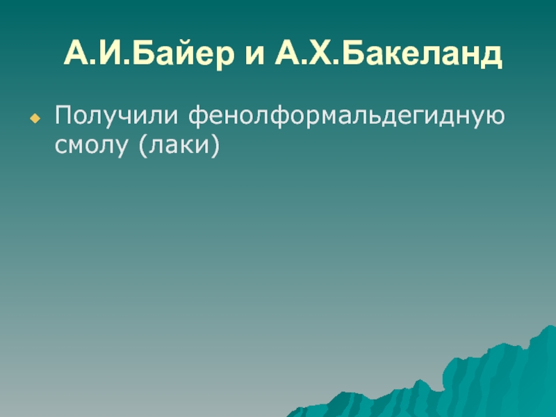 А.И.Байер и А.Х.БакеландПолучили фенолформальдегидную смолу (лаки)