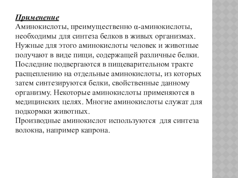 Слайд 18ПРИМЕНЕНИЕ АМИНОКИСЛОТ