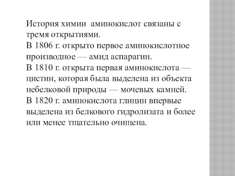 Слайд 5История химии аминокислот связаны с тремя открытиями.