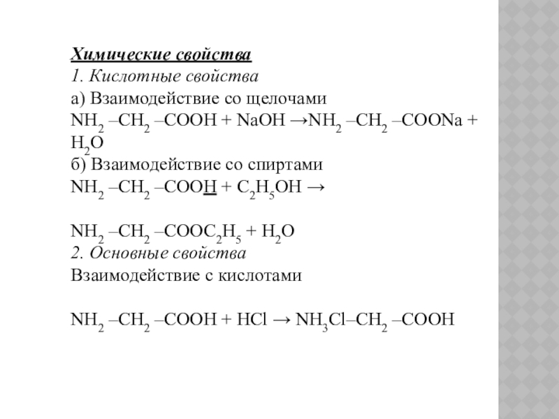 NH2 –CH2 –COOH + HCl → NH3Cl–CH2 –COOH