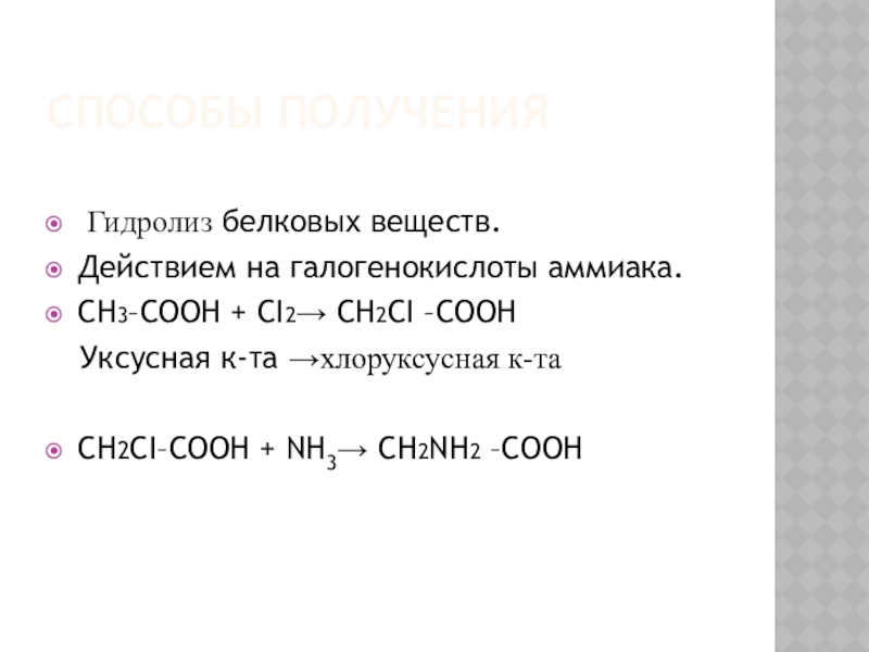 CH2CI–COOH + NH3→ CH2NH2 –COOH