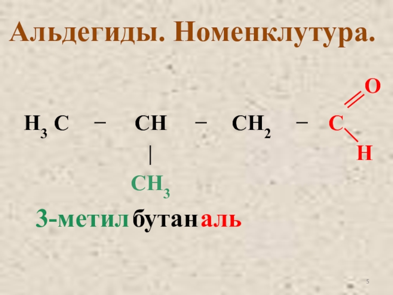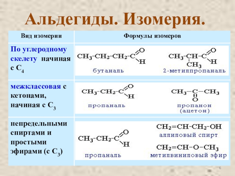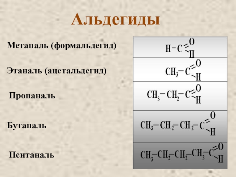 Метаналь (формальдегид) Этаналь (ацетальдегид) ПропанальБутанальПентанальАльдегиды