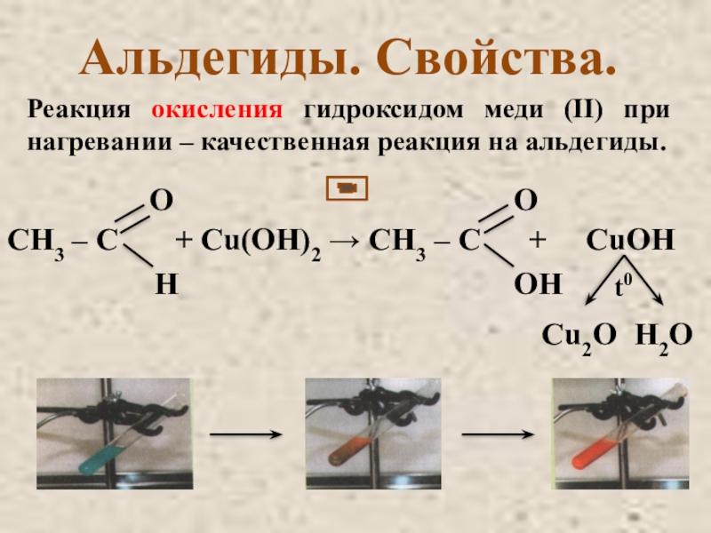 Реакция окисления гидроксидом меди (II) при нагревании – качественная реакция на альдегиды.Альдегиды. Свойства.