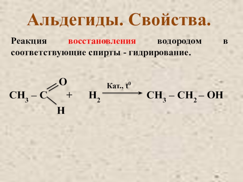 Реакция восстановления водородом в соответствующие спирты - гидрирование.Альдегиды. Свойства.