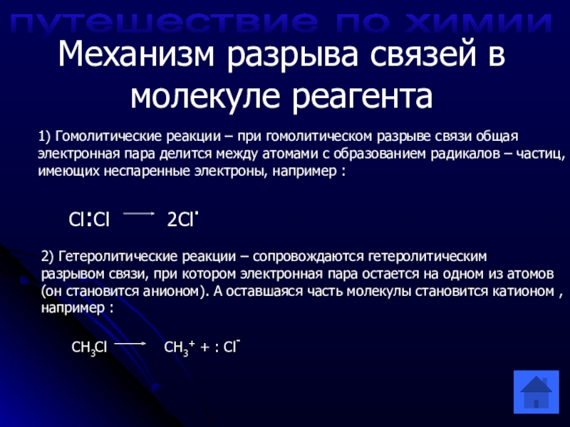2) Гетеролитические реакции – сопровождаются гетеролитическим