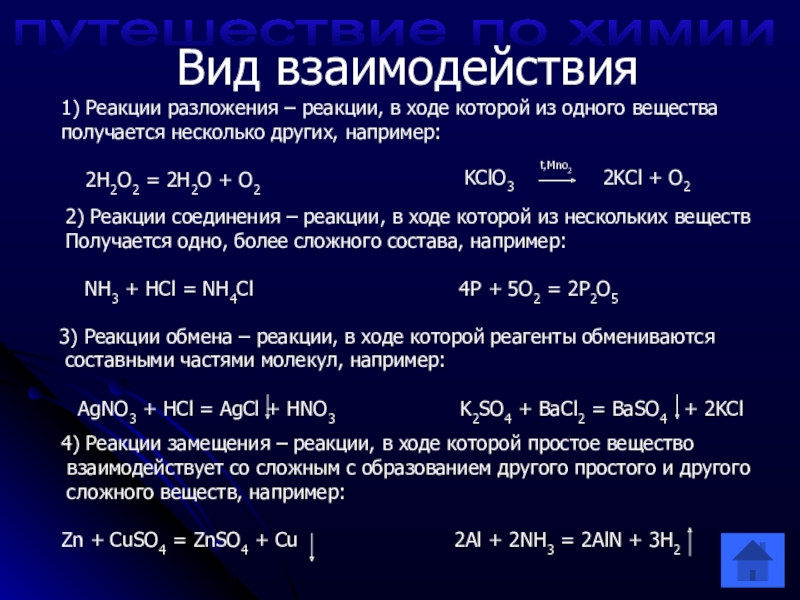 2) Реакции соединения – реакции, в ходе которой из нескольких веществ