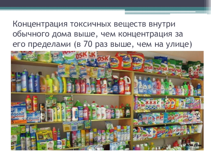Слайд 2Концентрация токсичных веществ внутри обычного дома выше, чем концентрация за его