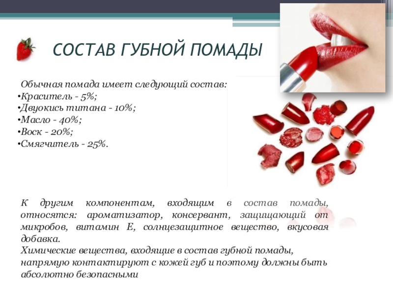 Слайд 10СОСТАВ ГУБНОЙ ПОМАДЫ