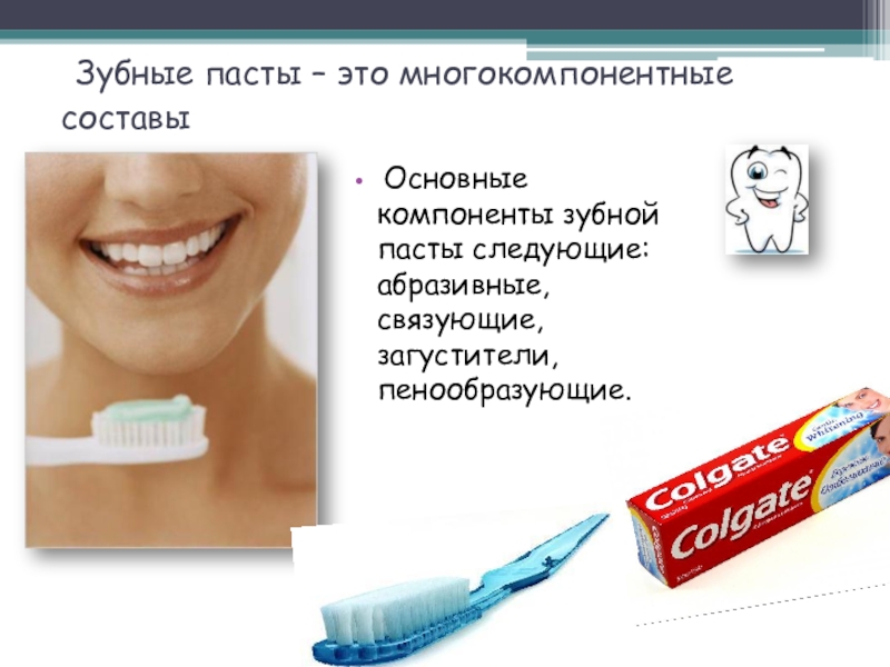 Слайд 8 Зубные пасты – это многокомпонентные составы