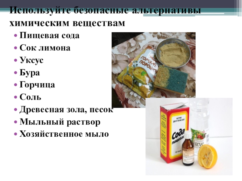 Слайд 24Используйте безопасные альтернативы химическим веществам