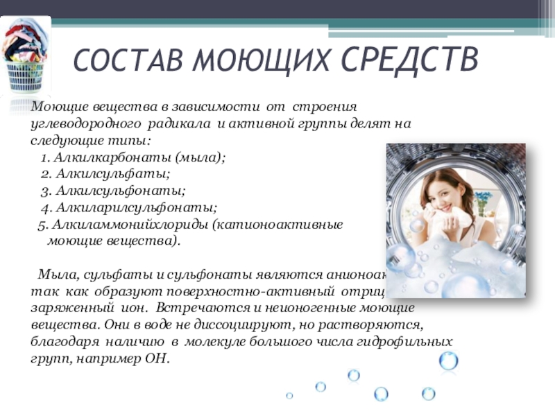 Слайд 14СОСТАВ МОЮЩИХ СРЕДСТВ