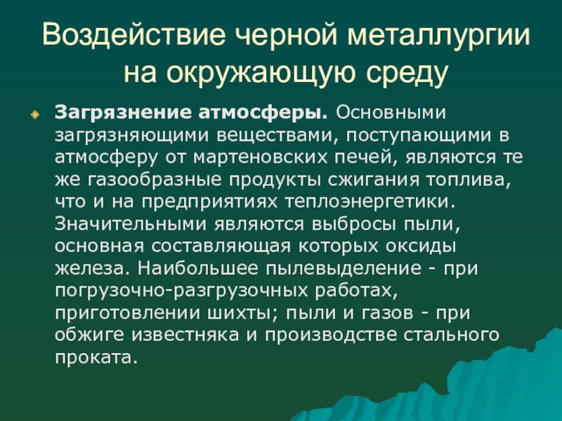 Слайд 30Воздействие черной металлургии на окружающую среду