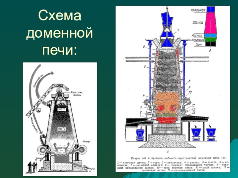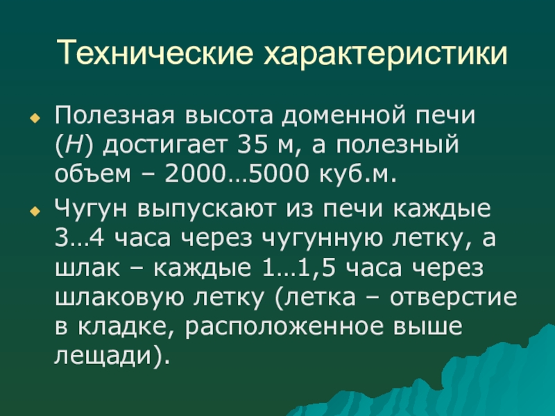 Полезная высота доменной печи (Н) достигает 35 м, а полезный
