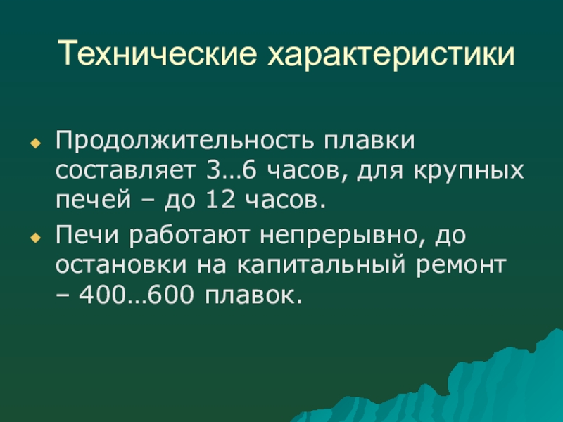 Печи работают непрерывно, до остановки на капитальный ремонт – 400…600 плавок.