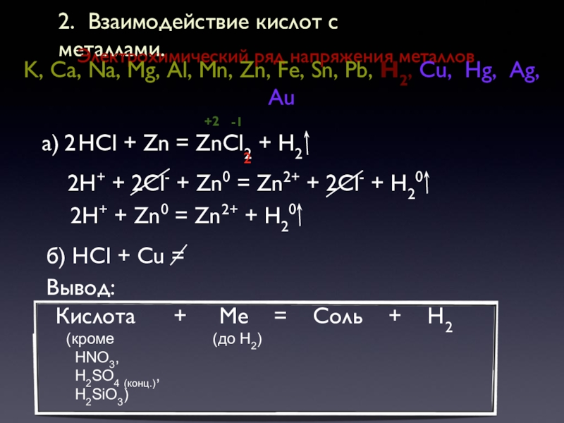 2. Взаимодействие кислот с металлами.