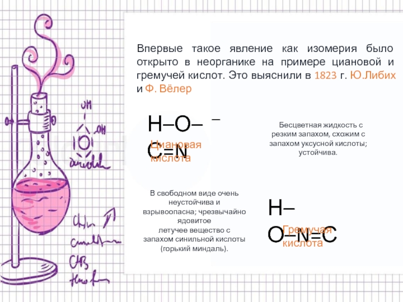 В свободном виде очень неустойчива и взрывоопасна; чрезвычайно ядовитое летучее вещество с запахом синильной кислоты (горький миндаль).