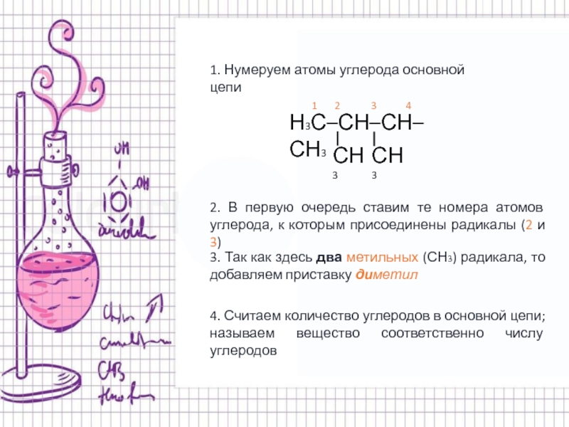 3. Так как здесь два метильных (СН3) радикала, то добавляем приставку диметил