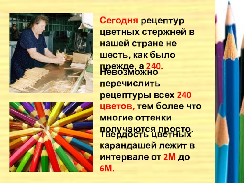Слайд 27Сегодня рецептур цветных стержней в нашей стране не шесть, как было