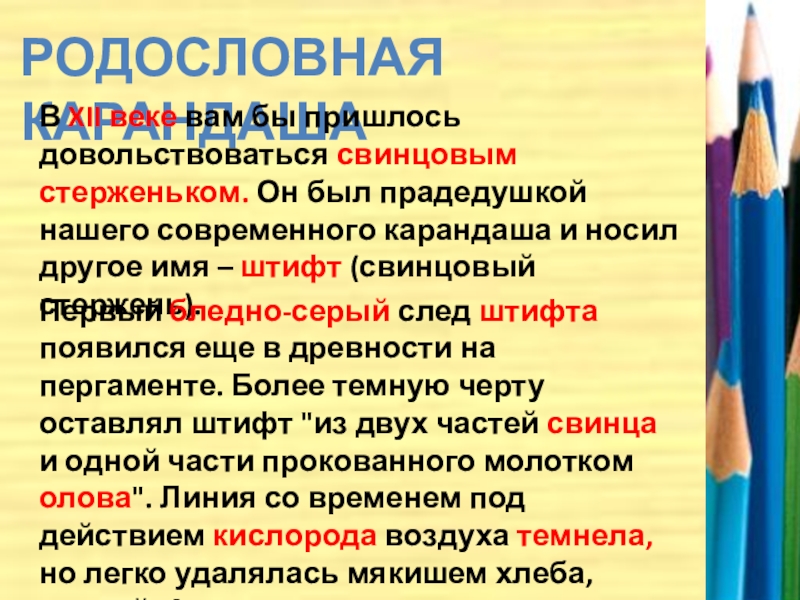 Слайд 3РОДОСЛОВНАЯ КАРАНДАША
