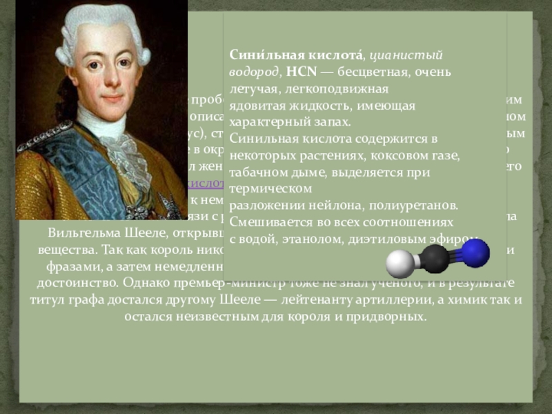 Сини́льная кислота́, цианистый водород, HCN — бесцветная, очень летучая, легкоподвижная ядовитая жидкость, имеющая характерный запах.