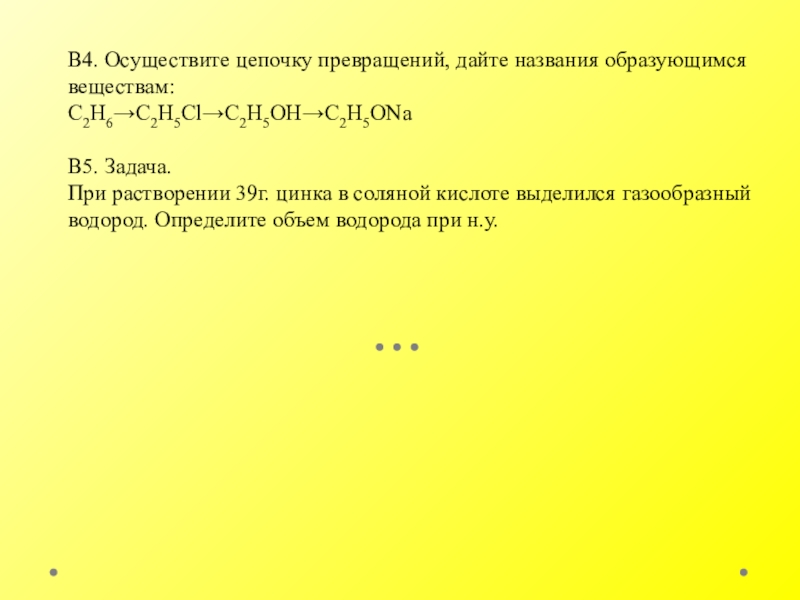 Слайд 22В4. Осуществите цепочку превращений, дайте названия образующимся веществам: