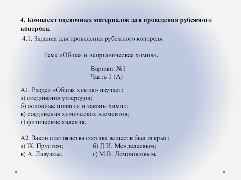 Слайд 84. Комплект оценочных материалов для проведения рубежного контроля.