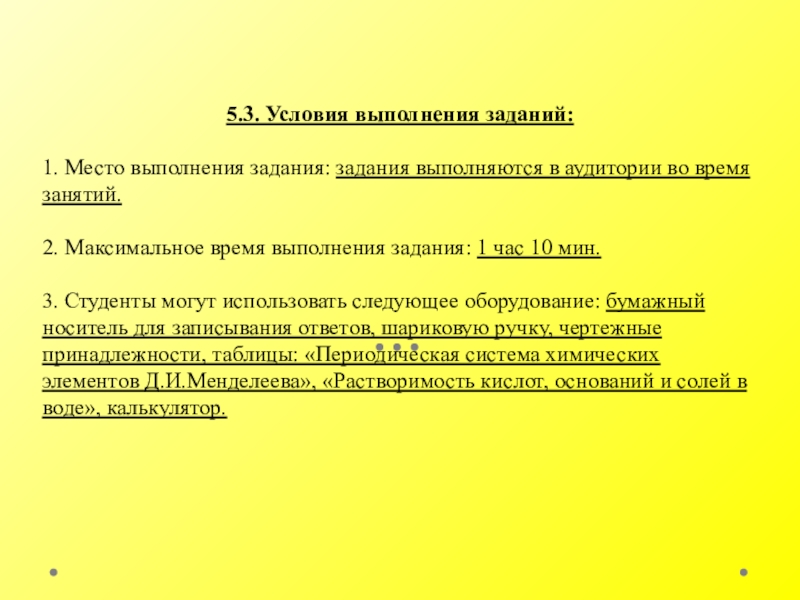 Оборудование: бумажный носитель для записывания ответов, шариковая ручка, чертежные принадлежности, таблицы: «Периодическая система химических элементов Д.И.Менделеева», «Растворимость кислот, оснований и солей в воде», калькулятор.