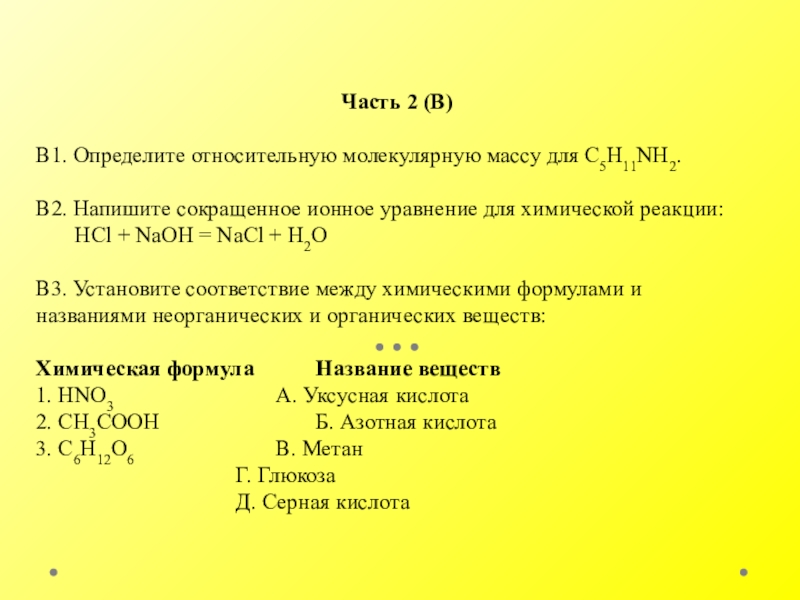 В1. Mr(C5H11NH2) = 12 ∙ 5 + 1 ∙