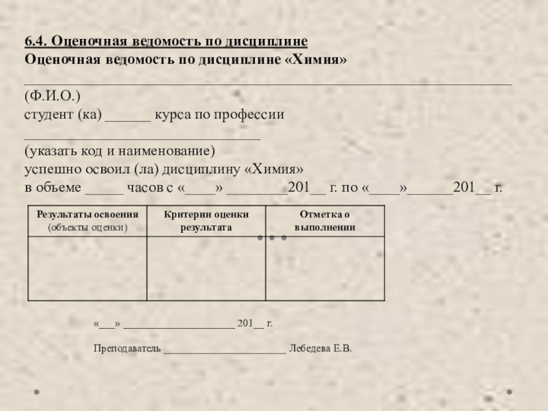 Слайд 336.4. Оценочная ведомость по дисциплине