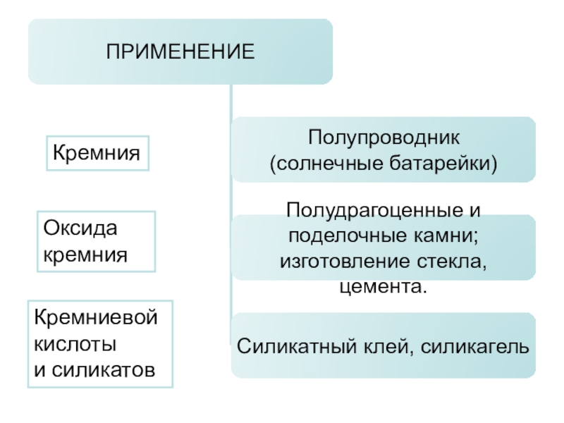 H2SiO3 – кремниевая кислота. Соли – силикаты.