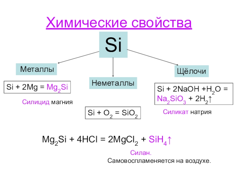 Mg2Si + 4HCl = 2MgCl2 + SiH4↑
