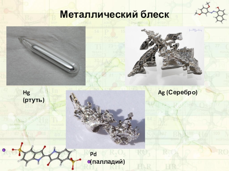 Металлический блескHg (ртуть)Pd (палладий)Ag (Серебро)