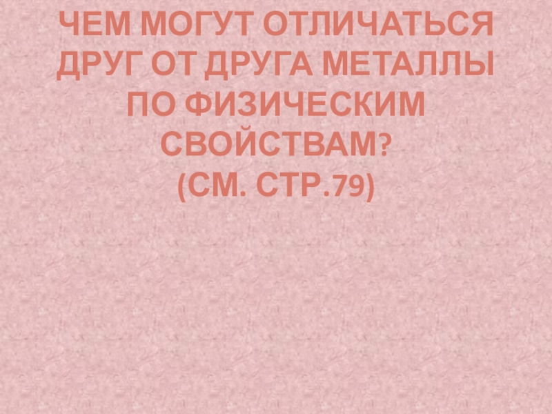 Слайд 15Чем могут отличаться друг от друга металлы по физическим свойствам? (см. стр.79)