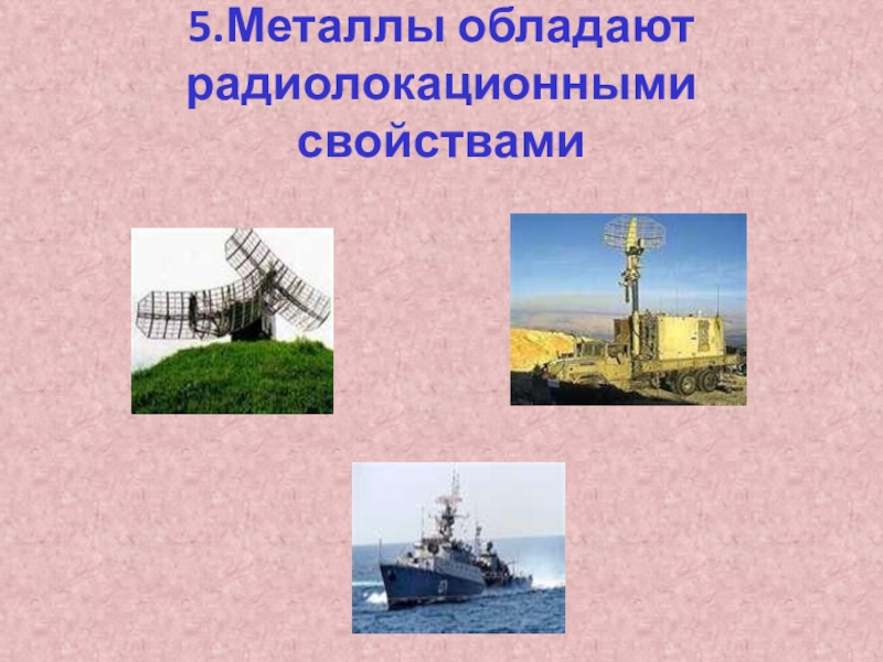 Слайд 145.Металлы обладают радиолокационными свойствами