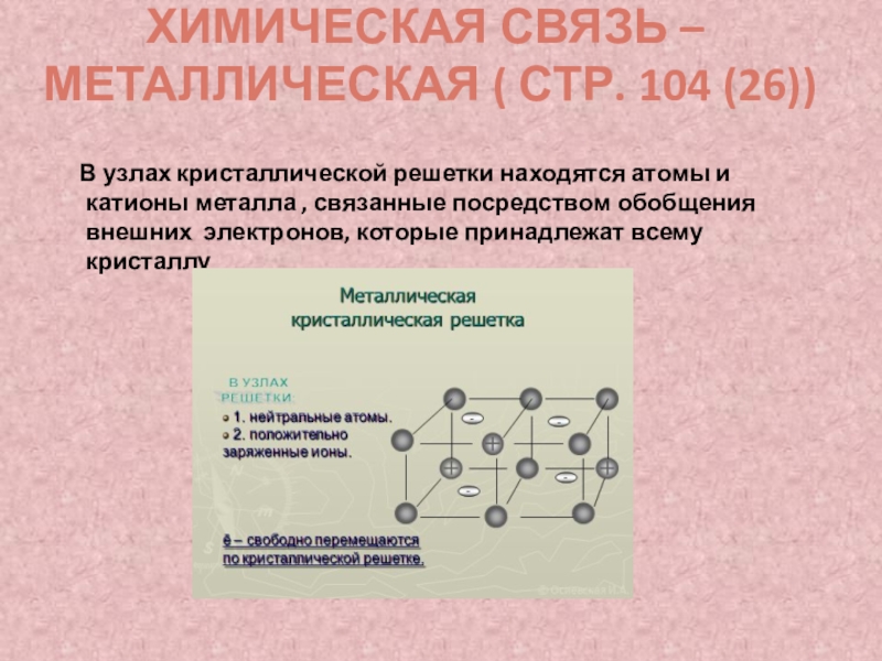 Слайд 6Химическая связь – металлическая ( стр. 104 (26))