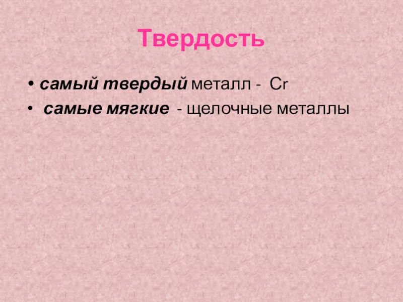 Твердость самый твердый металл - Сr самые мягкие - щелочные металлы