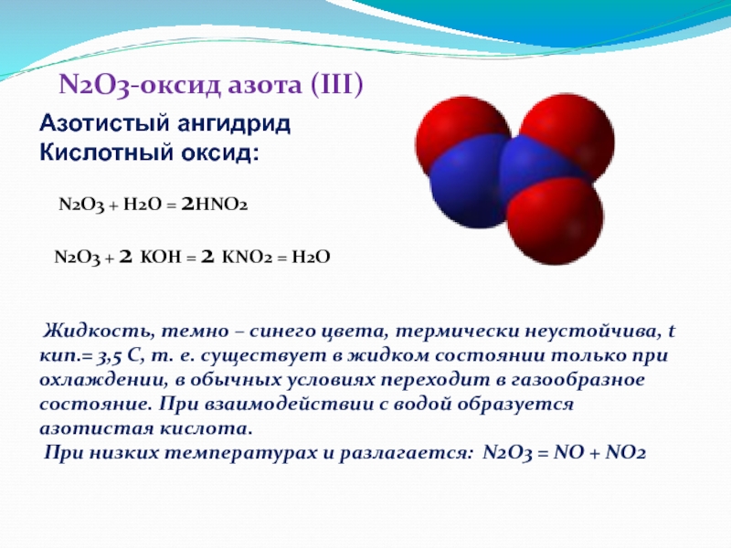 N2O3 – оксид азота(III) - азотистый ангидрид